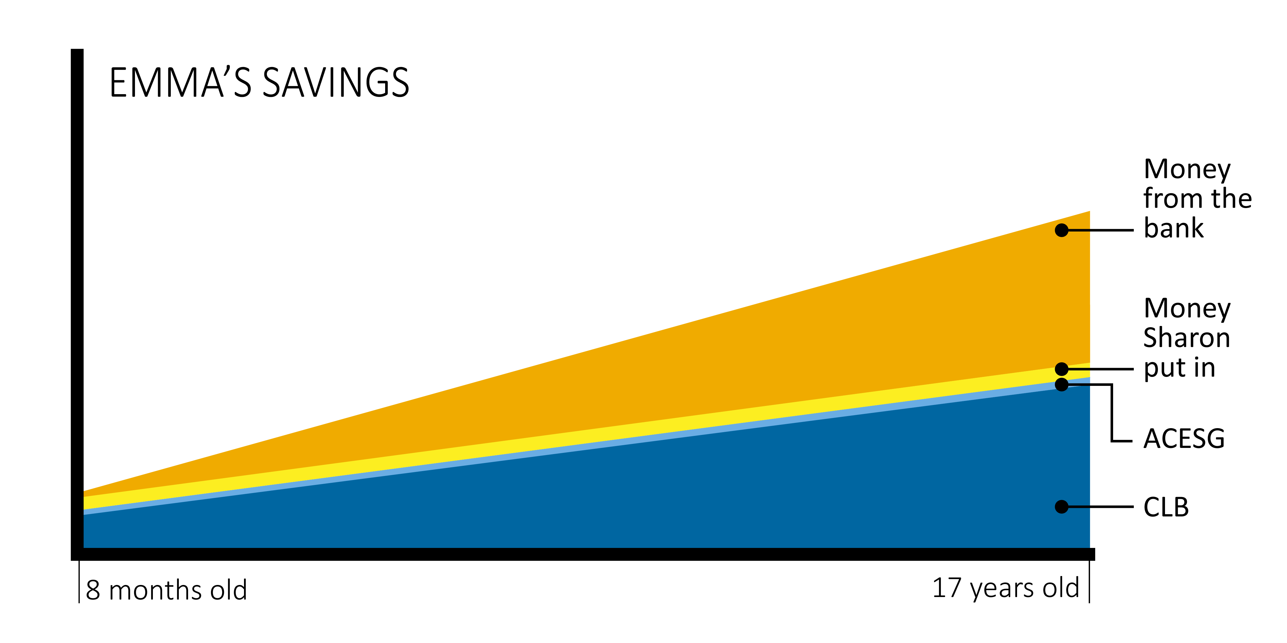 Since Sharon started saving early, she will get a lot of interest on top of all her savings. When Emma is 18, she could have over $5,000 in her RESP for her schooling!